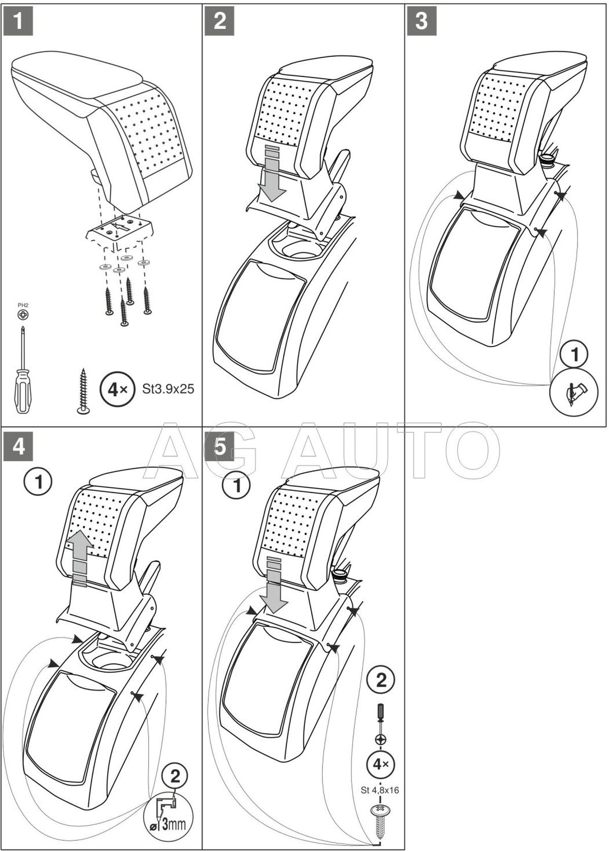 Montaż podłokietnika jest bardzo prosta i nie ma potrzeby odwiedzić serwis samochodowy. Instrukcja obsługi i wkręty do montażu znajdują się w zestawie. Część dolna podłokietnika – adapter, który przykręca się do tunelu środkowego, wykonany jest pod kształt konkretnego modelu auta, dlatego zawsze doskonale pasuje. Nie jest to uniwersalny adapter!