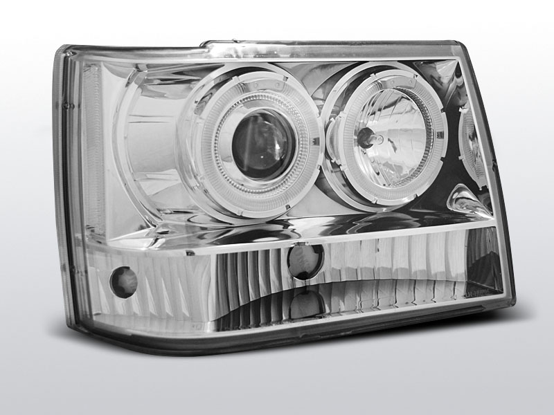 Lampy soczewkowe z ringami angel eyes. Chromowane