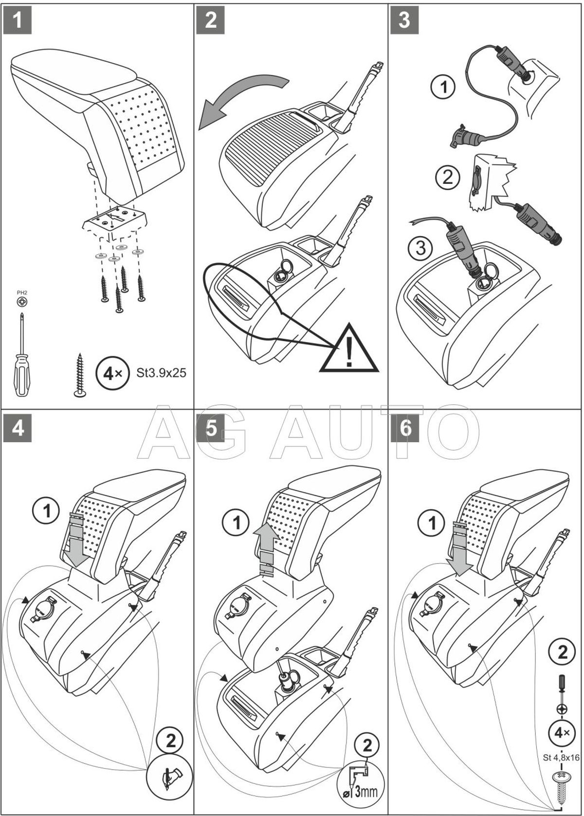 Montaż podłokietnika jest bardzo prosta i nie ma potrzeby odwiedzić serwis samochodowy. Instrukcja obsługi i wkręty do montażu znajdują się w zestawie. Część dolna podłokietnika – adapter, który przykręca się do tunelu środkowego, wykonany jest pod kształt konkretnego modelu auta, dlatego zawsze doskonale pasuje. Nie jest to uniwersalny adapter!