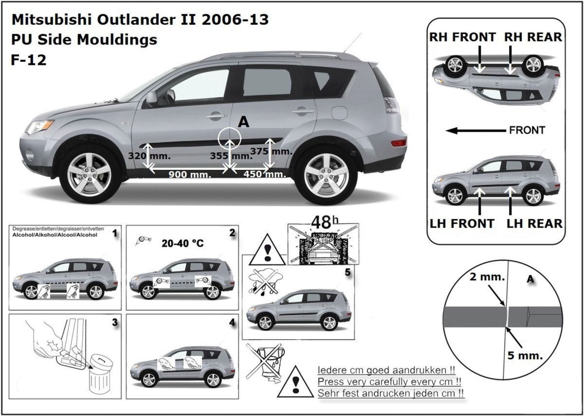 Listwy boczne na drzwi ochronne, Mitsubishi Outlander II, 2006-2012