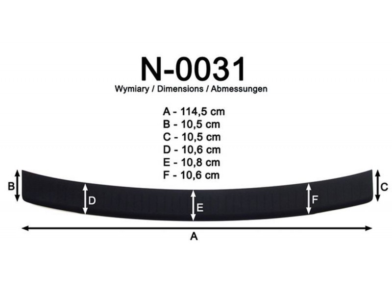 Listwa ochronna bagażnika jest produkowana z czarnego plastiku ABS charakteryzującego się wielką odpornością przeciw uszkodzeniom oraz otarciom. Prosty montaż listwy za pomocą taśmy obustronnej, która jest zawartością zestawu.