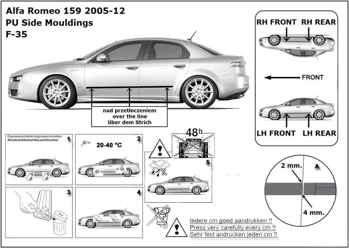 Listwy boczne na drzwi ochronne, Alfa Romeo 159, 2005->2011, sedan