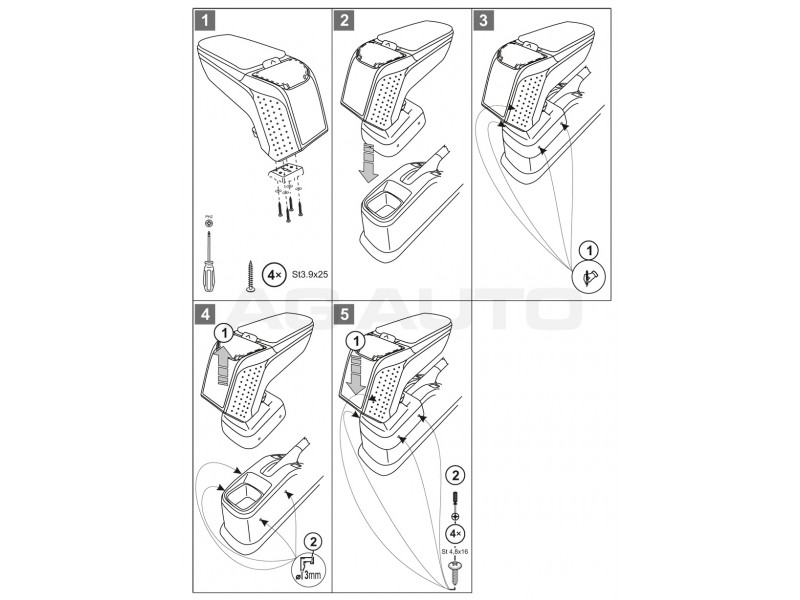 Montaż podłokietnika jest bardzo prosta i nie ma potrzeby odwiedzić serwis samochodowy. Instrukcja obsługi i wkręty do montażu znajdują się w zestawie. Część dolna podłokietnika – adapter, który przykręca się do tunelu środkowego, wykonany jest pod kształt konkretnego modelu auta, dlatego zawsze doskonale pasuje. Nie jest to uniwersalny adapter!