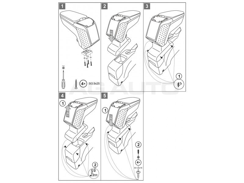 Montaż podłokietnika jest bardzo prosta i nie ma potrzeby odwiedzić serwis samochodowy. Instrukcja obsługi i wkręty do montażu znajdują się w zestawie. Część dolna podłokietnika – adapter, który przykręca się do tunelu środkowego, wykonany jest pod kształt konkretnego modelu auta, dlatego zawsze doskonale pasuje. Nie jest to uniwersalny adapter!