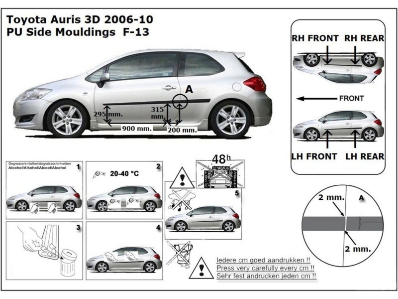Listwy boczne na drzwi ochronne, Toyota Auris, 2006-2012, 3 drzwi.