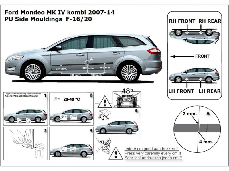 Listwy boczne na drzwi ochronne, Ford Mondeo IV, 2007-2014