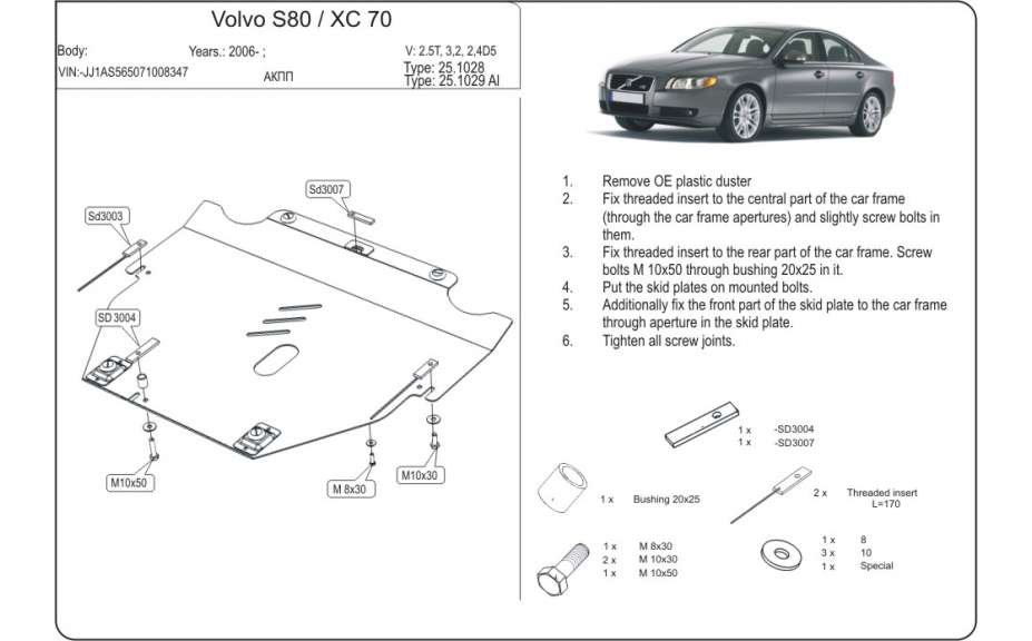 Osłona silnika i skrzynię biegów, VOLVO S80, 2006->