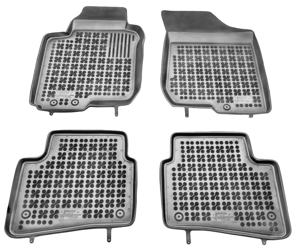 Przednie dywaniki są nawet wyposażone w miejsca na fabryczne stopery, które są zawarte w pakiecie. Dzięki stoperom można dywanik przymocować do podłogi samochodu i zapobiec suwaniu się dywanu. Dywaniki gumowe od producenta Rezaw-Plast mają nowoczesny design i produkowane są w Polsce. Wysokiej jakości materiał TPE nie wydziela nieprzyjemnego zapachu.