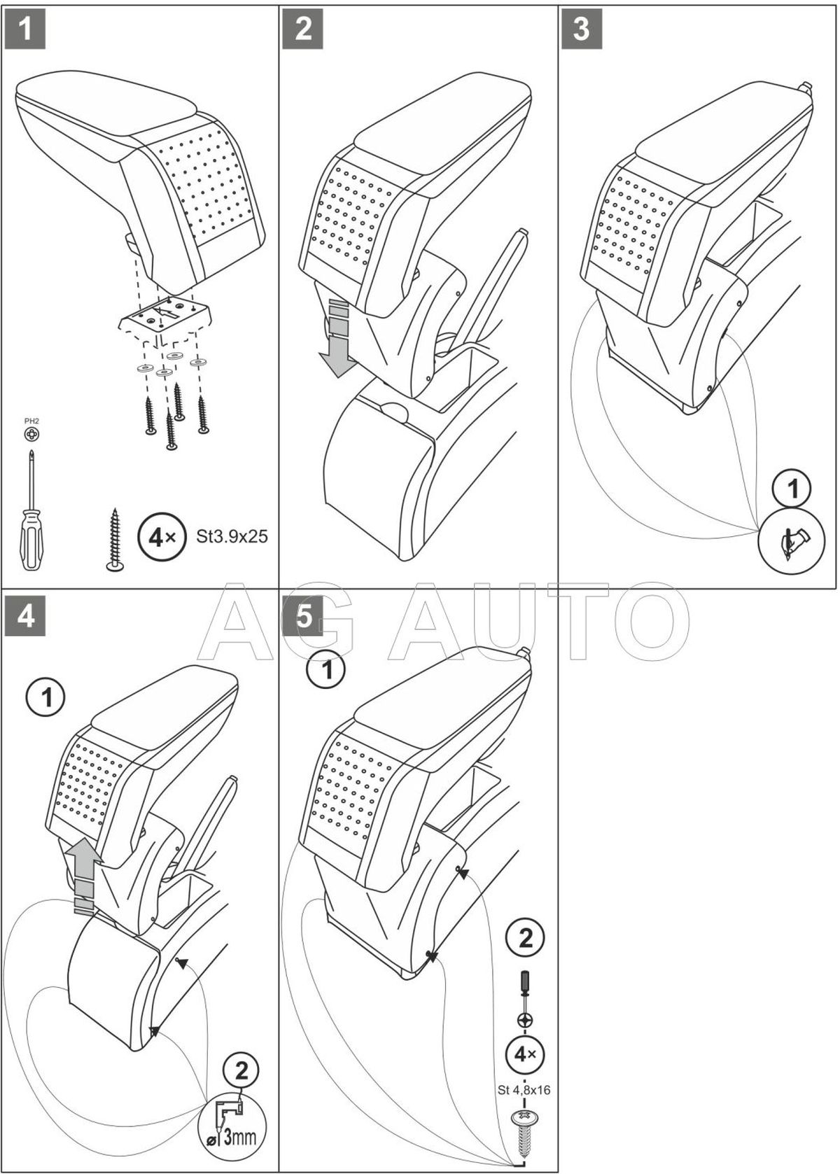 Montaż podłokietnika jest bardzo prosta i nie ma potrzeby odwiedzić serwis samochodowy. Instrukcja obsługi i wkręty do montażu znajdują się w zestawie. Część dolna podłokietnika – adapter, który przykręca się do tunelu środkowego, wykonany jest pod kształt konkretnego modelu auta, dlatego zawsze doskonale pasuje. Nie jest to uniwersalny adapter!