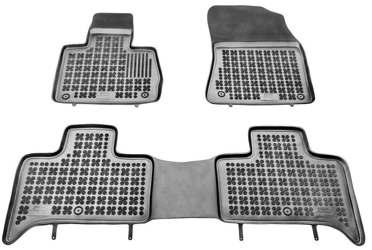 Dywaniki gumowe wykonane są na miarę, dlatego doskonale pasują do wybranego samochodu i nie zahaczają o przesuwany fotel. Wysoki brzeg i specjalnie zaprojektowana powierzchnia zapobiegają przelewaniu się wody i zanieczyszczeń podczas jazdy. Wzór na dywanie jest również antypoślizgowy. Dywaniki wykonane są z wysokiej jakości mieszanki gumowej, która jest bardzo odporna na przetarcie. Na dywanie kierowcy, w miejscu pod nogami, które najbardziej jest narażone na ścieranie, znajduję się nawet dodatkowe wzmocnienie.