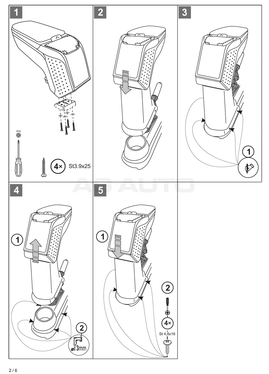 Montaż podłokietnika jest bardzo prosta i nie ma potrzeby odwiedzić serwis samochodowy. Instrukcja obsługi i wkręty do montażu znajdują się w zestawie. Część dolna podłokietnika – adapter, który przykręca się do tunelu środkowego, wykonany jest pod kształt konkretnego modelu auta, dlatego zawsze doskonale pasuje. Nie jest to uniwersalny adapter!