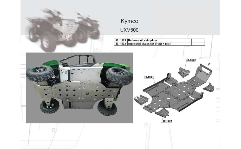 Osłony wahaczy (przód+tył), KYMCO UXV 500, 2008->, Aluminium 4 mm