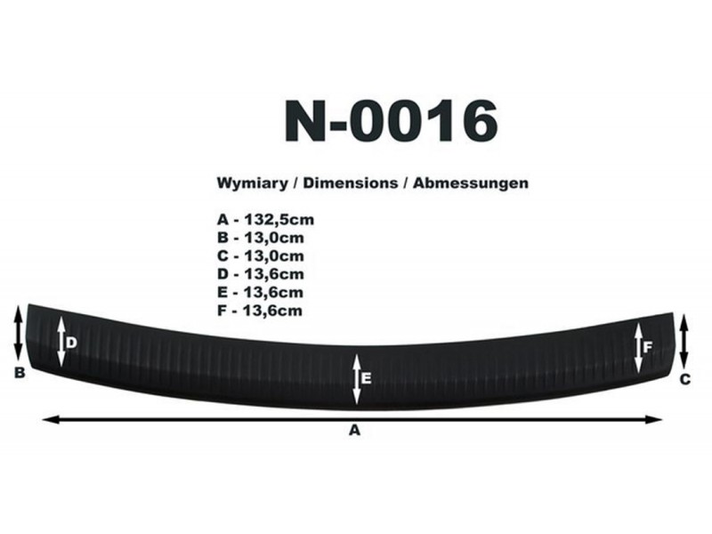 Listwa ochronna bagażnika jest produkowana z czarnego plastiku ABS charakteryzującego się wielką odpornością przeciw uszkodzeniom oraz otarciom. Prosty montaż listwy za pomocą taśmy obustronnej, która jest zawartością zestawu.