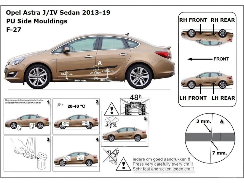 Listwy boczne na drzwi ochronne, Opel Astra J, 2009-2015, Sedan