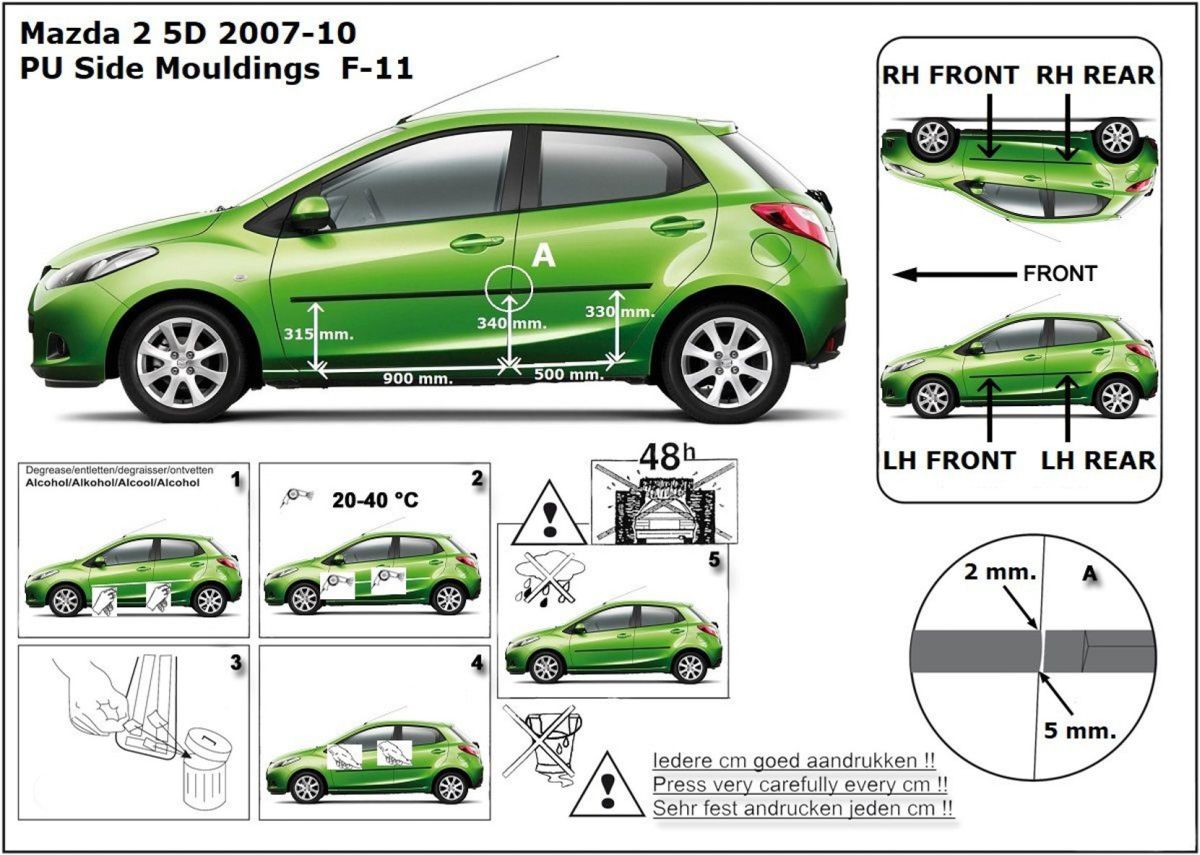 Listwy boczne na drzwi ochronne, Mazda 2 III, 2007-2010
