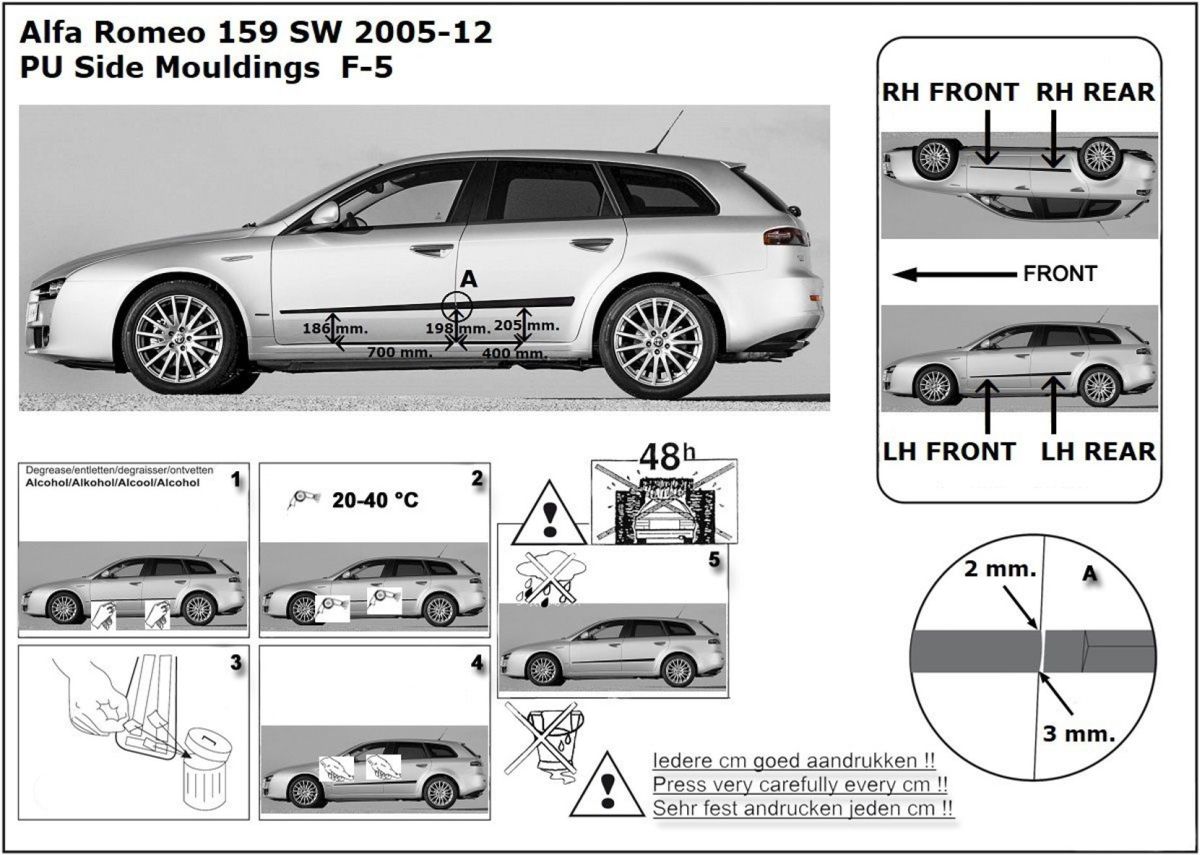 Listwy boczne na drzwi ochronne, Alfa Romeo 159, 2005->2011, combi, wagon