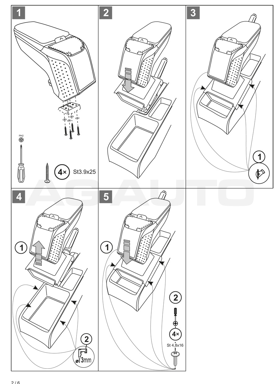 Montaż podłokietnika jest bardzo prosta i nie ma potrzeby odwiedzić serwis samochodowy. Instrukcja obsługi i wkręty do montażu znajdują się w zestawie. Część dolna podłokietnika – adapter, który przykręca się do tunelu środkowego, wykonany jest pod kształt konkretnego modelu auta, dlatego zawsze doskonale pasuje. Nie jest to uniwersalny adapter!