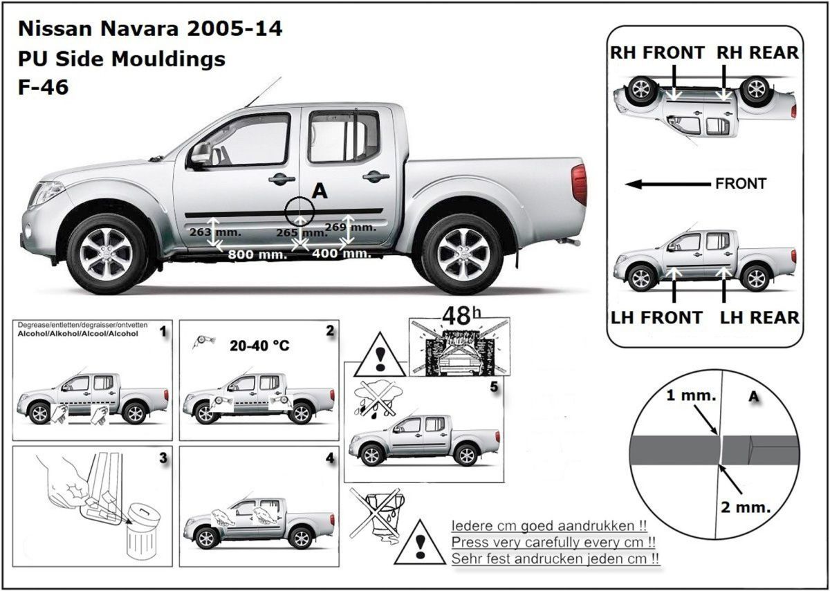 Listwy boczne na drzwi ochronne, Nissan Navara III, 2005-2014