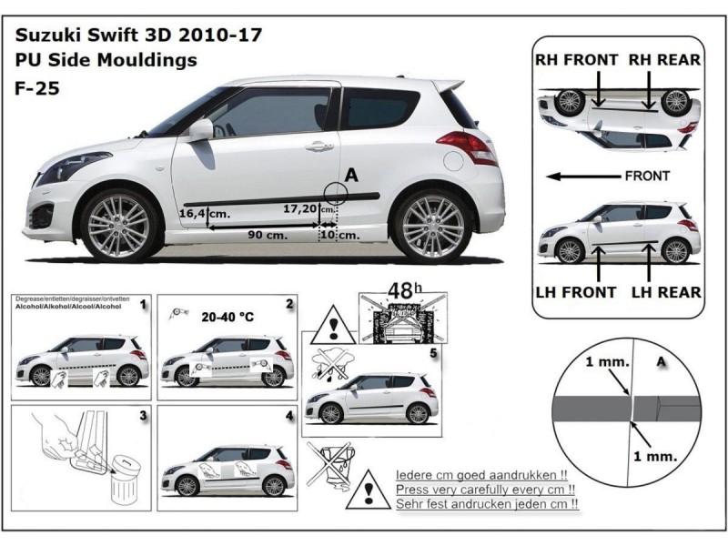 Listwy boczne na drzwi ochronne, Suzuki Swift IV, 2010-2017, 5 drzwi.