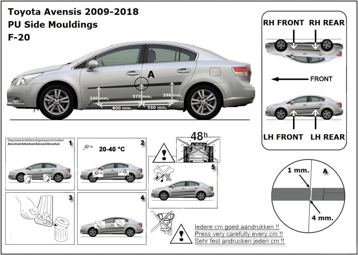 Listwy boczne na drzwi ochronne, Toyota Avensis III, 2009-2018