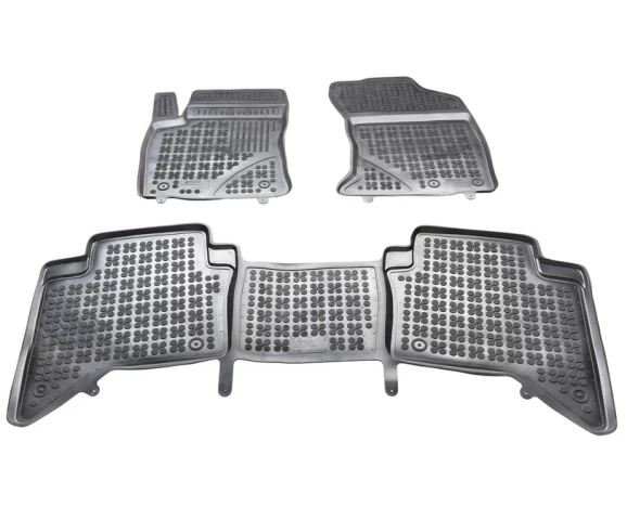 Dywaniki gumowe wykonane są na miarę, dlatego doskonale pasują do wybranego samochodu i nie zahaczają o przesuwany fotel. Wysoki brzeg i specjalnie zaprojektowana powierzchnia zapobiegają przelewaniu się wody i zanieczyszczeń podczas jazdy. Wzór na dywanie jest również antypoślizgowy. Dywaniki wykonane są z wysokiej jakości mieszanki gumowej, która jest bardzo odporna na przetarcie. Na dywanie kierowcy, w miejscu pod nogami, które najbardziej jest narażone na ścieranie, znajduję się nawet dodatkowe wzmocnienie.