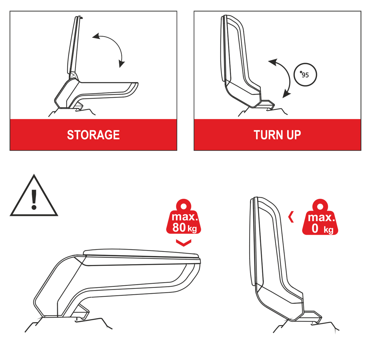 Podłokietnik jest otwierany, wewnątrz znajduje się praktyczny schowek dla rzeczy kierowcy i współkierowcy. Schowek jest wyścielony i można go otworzyć za pomocą przycisku. Całą górną część można odchylić do pionu, kiedy jest to potrzebne.