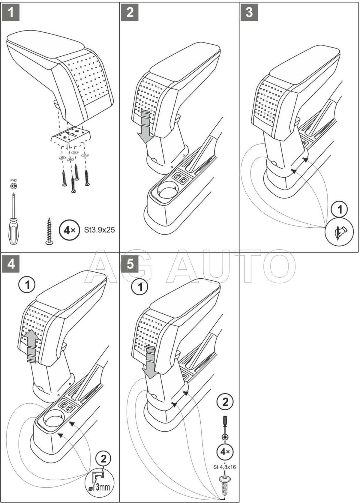 Montaż podłokietnika jest bardzo prosta i nie ma potrzeby odwiedzić serwis samochodowy. Instrukcja obsługi i wkręty do montażu znajdują się w zestawie. Część dolna podłokietnika – adapter, który przykręca się do tunelu środkowego, wykonany jest pod kształt konkretnego modelu auta, dlatego zawsze doskonale pasuje. Nie jest to uniwersalny adapter!