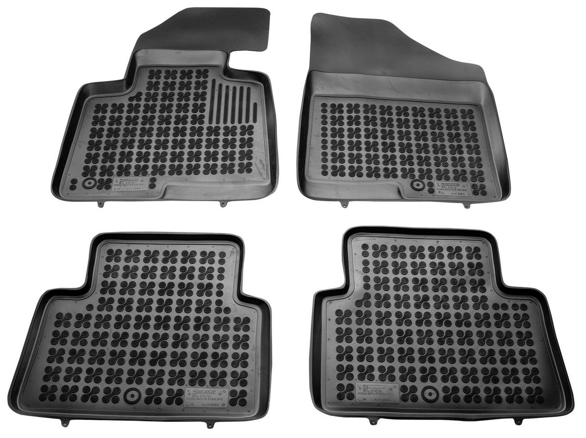 Przednie dywaniki są nawet wyposażone w miejsca na fabryczne stopery, które są zawarte w pakiecie. Dzięki stoperom można dywanik przymocować do podłogi samochodu i zapobiec suwaniu się dywanu. Dywaniki gumowe od producenta Rezaw-Plast mają nowoczesny design i produkowane są w Polsce. Wysokiej jakości materiał TPE nie wydziela nieprzyjemnego zapachu.
