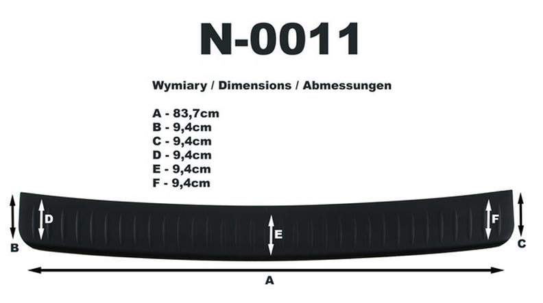 Listwa ochronna bagażnika jest produkowana z czarnego plastiku ABS charakteryzującego się wielką odpornością przeciw uszkodzeniom oraz otarciom. Prosty montaż listwy za pomocą taśmy obustronnej, która jest zawartością zestawu.