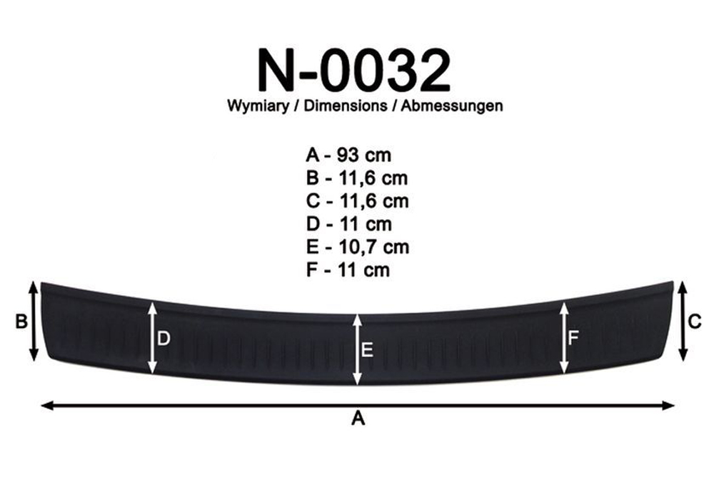 Listwa ochronna bagażnika jest produkowana z czarnego plastiku ABS charakteryzującego się wielką odpornością przeciw uszkodzeniom oraz otarciom. Prosty montaż listwy za pomocą taśmy obustronnej, która jest zawartością zestawu.