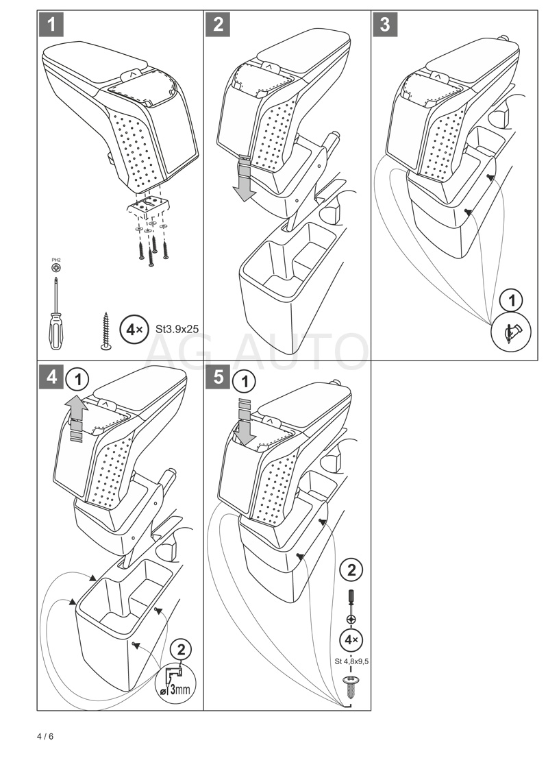 Montaż podłokietnika jest niezwykle prosty – nie trzeba odwiedzać serwisu. Instrukcja znajduje się w zestawie. Uchwyty montażowe są produkowane indywidualnie do konkretnych modeli pojazdów, dzięki czemu idealnie pasują. Nie otrzymasz żadnego uniwersalnego adaptera, który mógłby sprawić problemy przy instalacji.