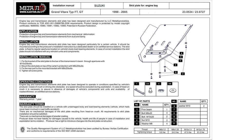 Osłona skrzynię biegów i skrzynię rozdzielczą, SUZUKI Grand Vitara do 0726, (FT; GT), 1998->200...