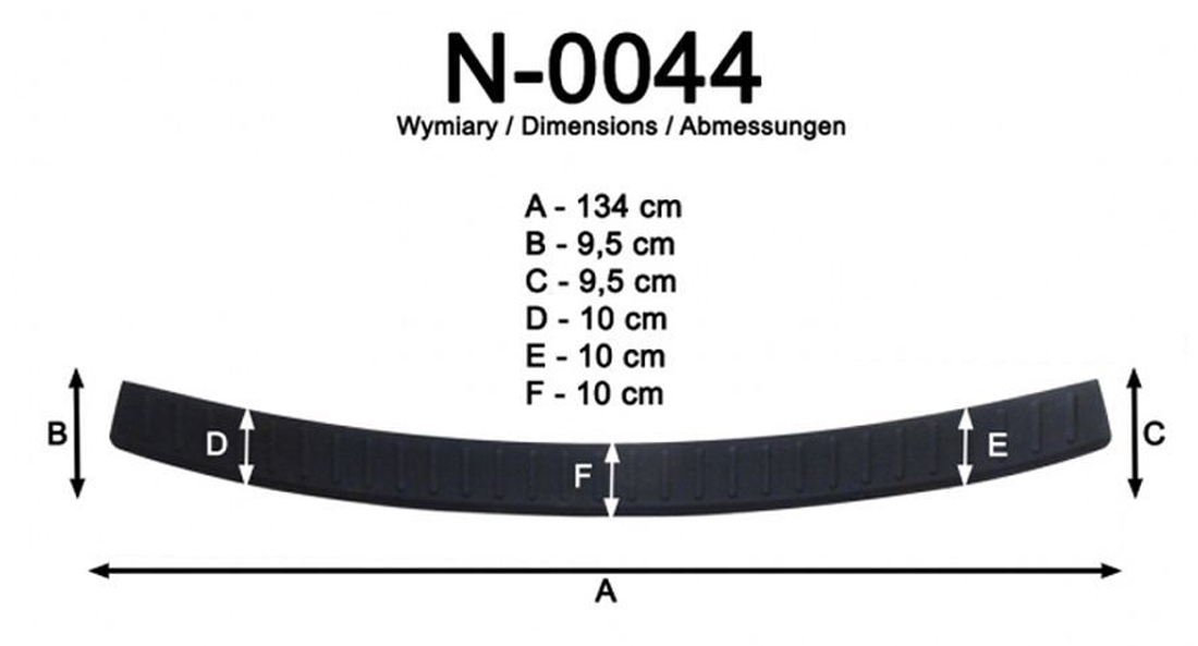 Listwa ochronna bagażnika jest produkowana z czarnego plastiku ABS charakteryzującego się wielką odpornością przeciw uszkodzeniom oraz otarciom. Prosty montaż listwy za pomocą taśmy obustronnej, która jest zawartością zestawu.