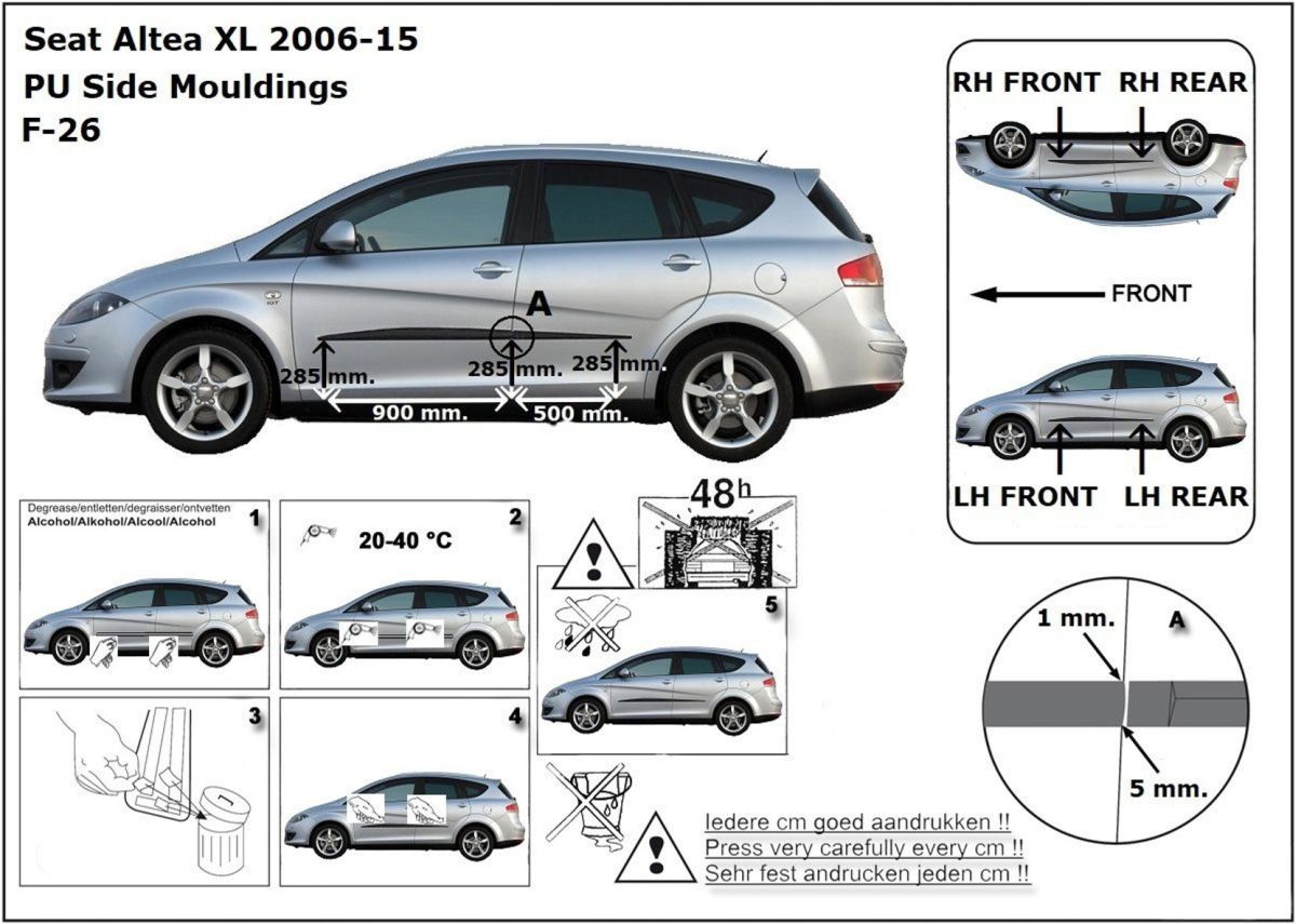 Listwy boczne na drzwi ochronne, Seat Altea XL, 2006-2015