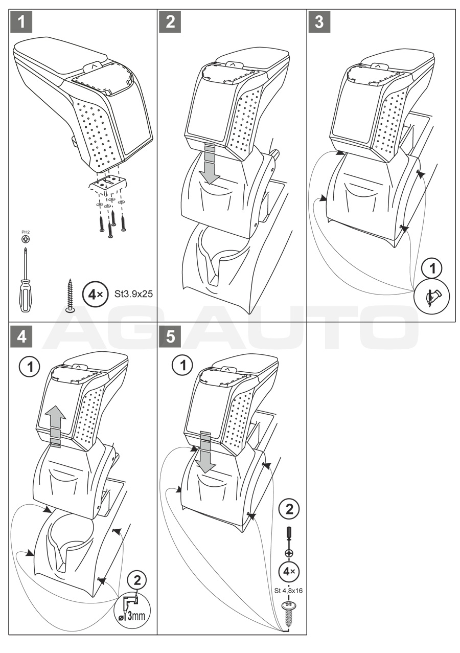 Montaż podłokietnika jest niezwykle prosty – nie trzeba odwiedzać serwisu. Instrukcja znajduje się w zestawie. Uchwyty montażowe są produkowane indywidualnie do konkretnych modeli pojazdów, dzięki czemu idealnie pasują. Nie otrzymasz żadnego uniwersalnego adaptera, który mógłby sprawić problemy przy instalacji.