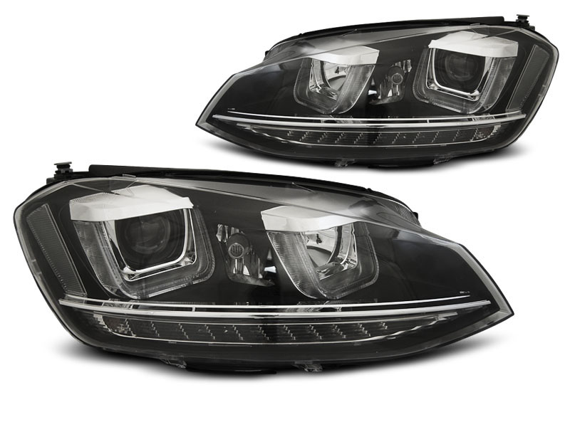 Lampy przednie, VW GOLF 7, 2012-2017, U-TYPE BLACK WITH CHROME LINE
