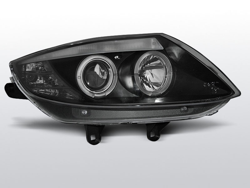 Lampy soczewkowe z ringami angel eyes. Czarne ze zintegrowanymi kierunkowskazami.