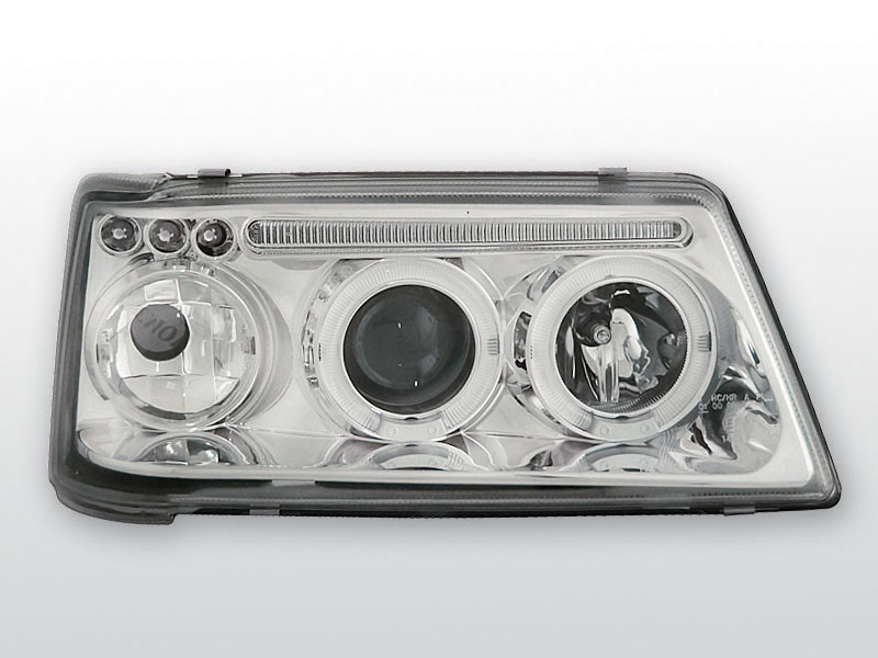 Lampy soczewkowe z ringami angel eyes. Chromowane