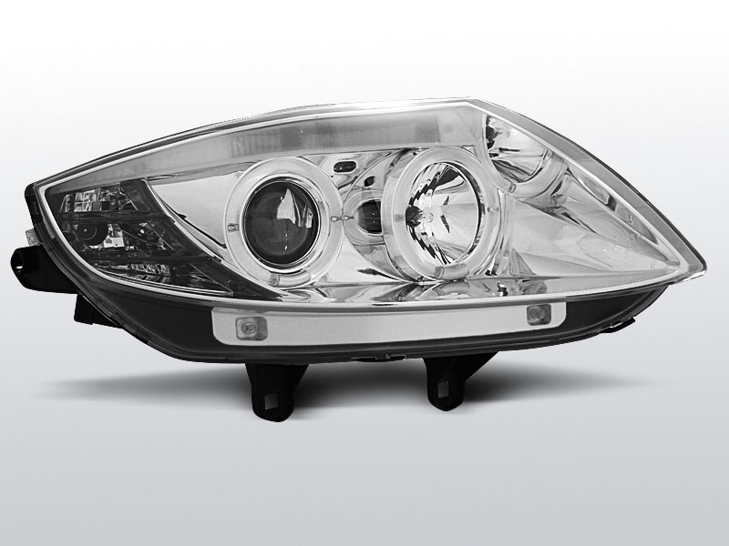 Lampy soczewkowe z ringami angel eyes. Chromowane ze zintegrowanymi kierunkowskazami.