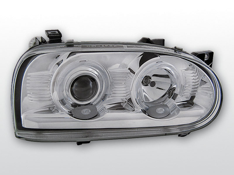 Homologacja: norma E - dopuszczone do ruchu w komplecie (lewa i prawa) Światła pozycyjne: RINGI Światła mijania: H7 (brak w zestawie) Światła drogowe: H7 (brak w zestawie) Lampy soczewkowe z ringami angel eyes. Chromowane Regulacja: elektryczna Silniczka nie ma w komplecie