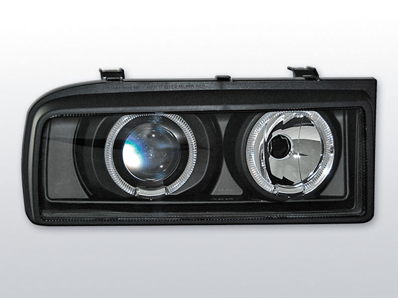Homologacja: norma E - dopuszczone do ruchu w komplecie (lewa i prawa) Światła pozycyjne: RINGI Światła mijania: H7 (brak w zestawie) Światła drogowe: H7 (brak w zestawie) Lampy z ringami angel eyes. Czarne Regulacja: elektryczna Silniczka nie ma w komplecie