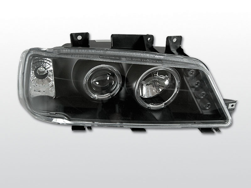 Lampy soczewkowe z ringami angel eyes. Czarne ze zintegrowanymi kierunkowskazami.