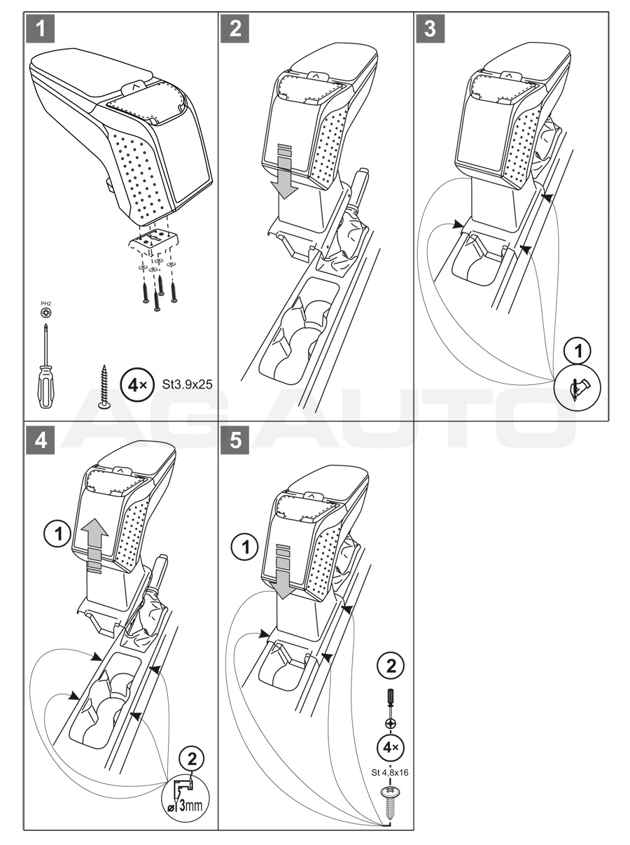 Montaż podłokietnika jest niezwykle prosty – nie trzeba odwiedzać serwisu. Instrukcja znajduje się w zestawie. Uchwyty montażowe są produkowane indywidualnie do konkretnych modeli pojazdów, dzięki czemu idealnie pasują. Nie otrzymasz żadnego uniwersalnego adaptera, który mógłby sprawić problemy przy instalacji.