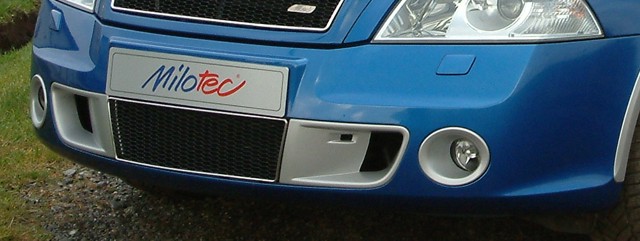Kratka zderzaku s bocznym wydmuchem-ABS srebrna, kratka czarna, Škoda Octavia II RS, Milotec