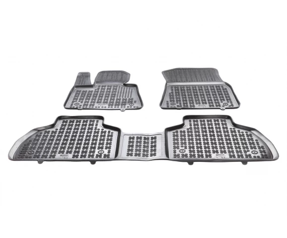 Dywaniki gumowe wykonane są na miarę, dlatego doskonale pasują do wybranego samochodu i nie zahaczają o przesuwany fotel. Wysoki brzeg i specjalnie zaprojektowana powierzchnia zapobiegają przelewaniu się wody i zanieczyszczeń podczas jazdy. Wzór na dywanie jest również antypoślizgowy. Dywaniki wykonane są z wysokiej jakości mieszanki gumowej, która jest bardzo odporna na przetarcie. Na dywanie kierowcy, w miejscu pod nogami, które najbardziej jest narażone na ścieranie, znajduję się nawet dodatkowe wzmocnienie.