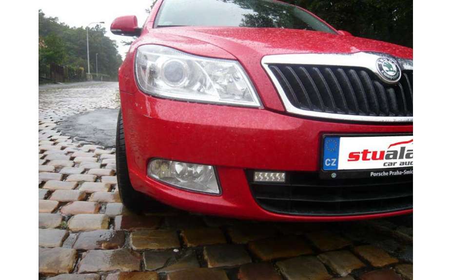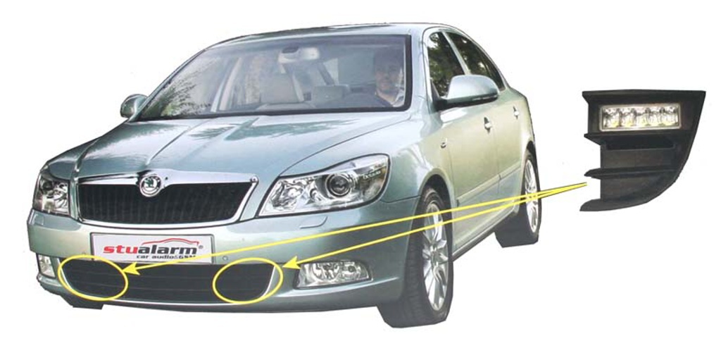 LED światła zabudowane do oryginalnej części zderzaku, Škoda Octavia II facelift, 2008->