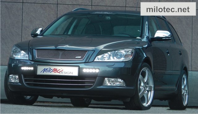 LED denní světla Hella s krycími plasty z černého ABS/ASA, Octavia II. Facelift