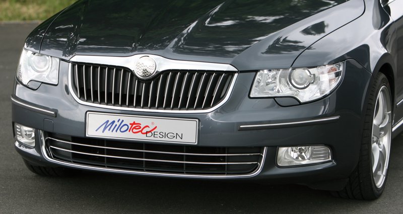 Ozdobne listwy atrapy chłodnicy nierdzewne, Skoda Superb II , Milotec