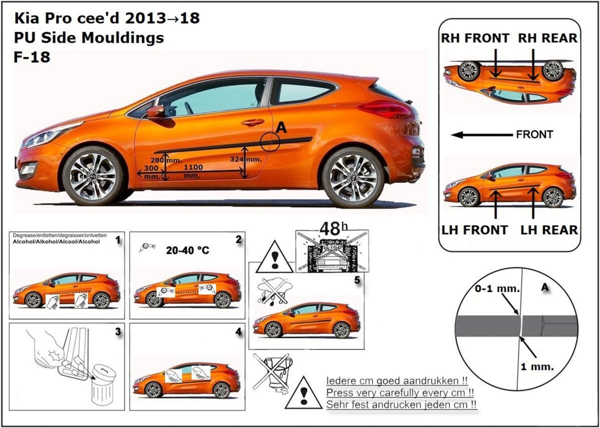 Listwy boczne na drzwi ochronne, Kia ProCeed II, 2012-2018