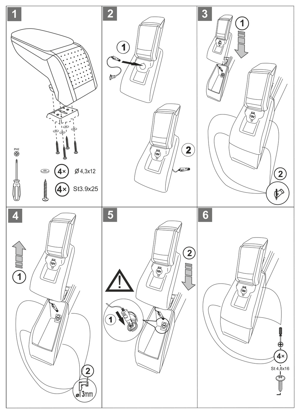 Montaż podłokietnika jest bardzo prosta i nie ma potrzeby odwiedzić serwis samochodowy. Instrukcja obsługi i wkręty do montażu znajdują się w zestawie. Część dolna podłokietnika – adapter, który przykręca się do tunelu środkowego, wykonany jest pod kształt konkretnego modelu auta, dlatego zawsze doskonale pasuje. Nie jest to uniwersalny adapter!